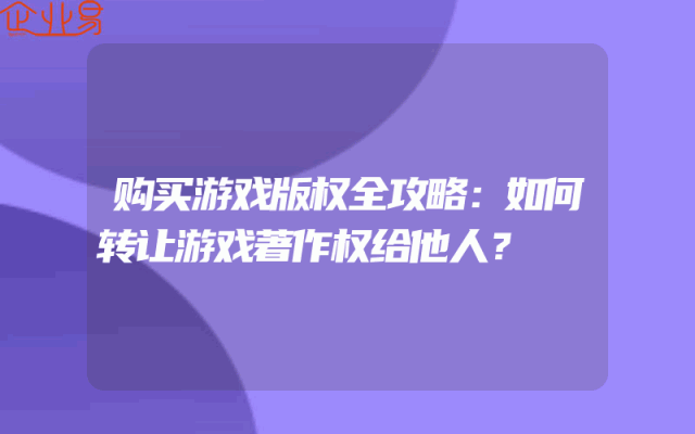- 购买游戏版权全攻略:如何转让游戏著作权给他人?