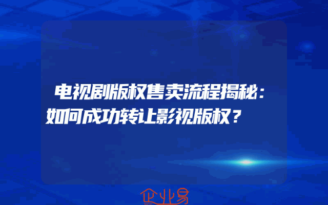 - 电视剧版权售卖流程揭秘:如何成功转让影视版权?