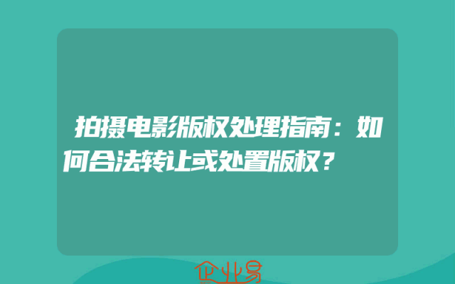 - 拍摄电影版权处理指南:如何合法转让或处置版权?