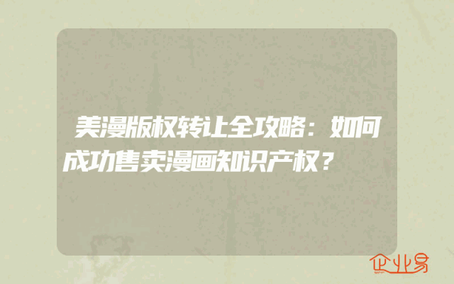 - 美漫版权转让全攻略:如何成功售卖漫画知识产权?