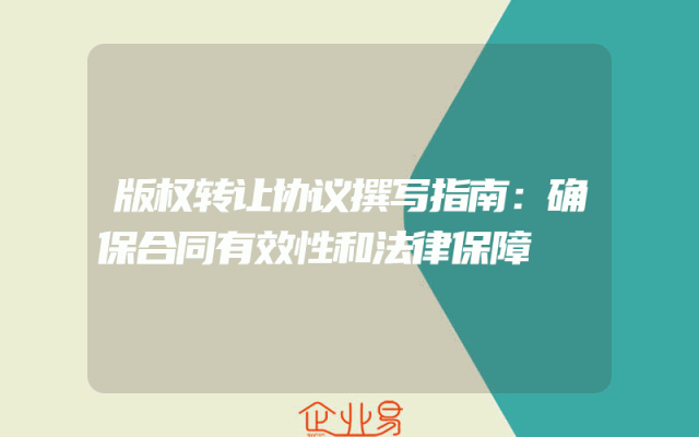 - 版权转让协议撰写指南:确保合同有效性和法律保障