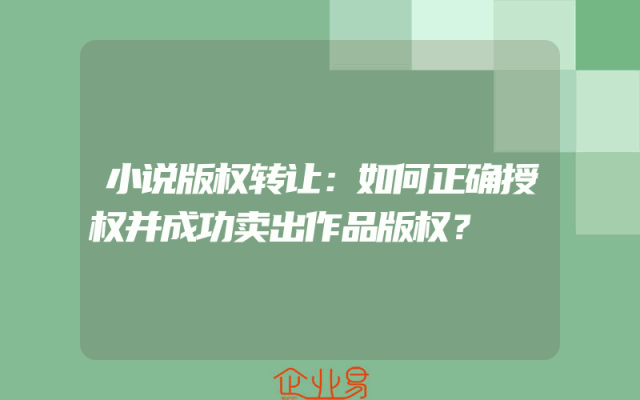 - 小说版权转让:如何正确授权并成功卖出作品版权?
