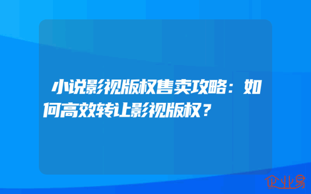 - 小说影视版权售卖攻略:如何高效转让影视版权?