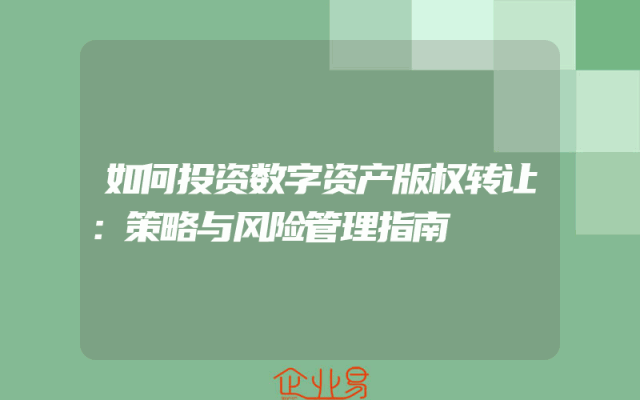 - 如何投资数字资产版权转让:策略与风险管理指南