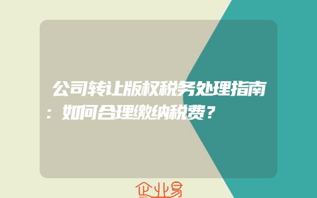 - 公司转让版权税务处理指南:如何合理缴纳税费?