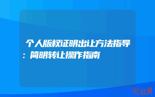 - 个人版权证明出让方法指导:简明转让操作指南一、了解个人版权及转让基础知识在数字化时代,个人版权保护尤为重要。个人版权证明是创作者对其创作成果拥有合法权益的法定凭证。版权转让则是指版权所有者将其部分或全部权利转移给另一方的行为。进行版权转让前
