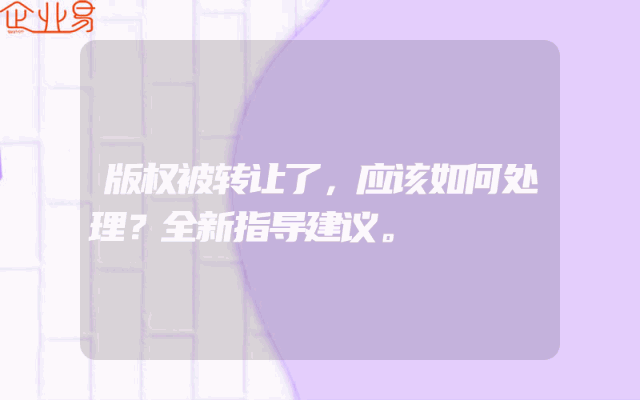 - 版权被转让了,应该如何处理?全新指导建议。