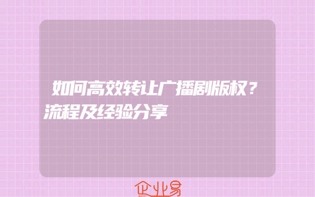 - 如何有效转让广播剧版权?攻略助你轻松上手!