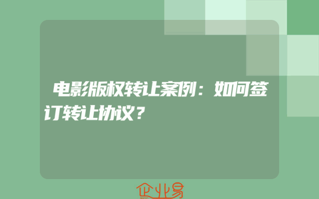 - 电影版权转让案例:如何签订转让协议?