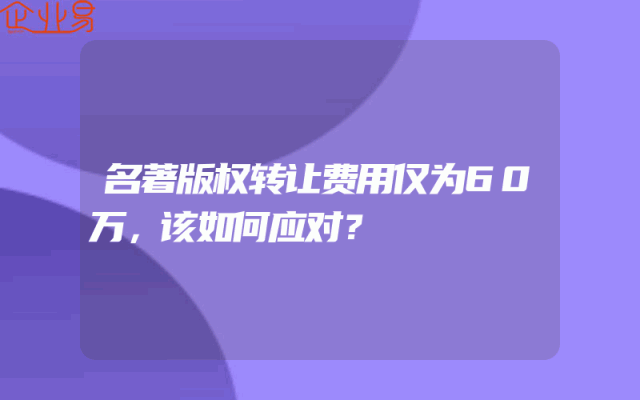 - 名著版权转让费用仅为60万,该如何应对?