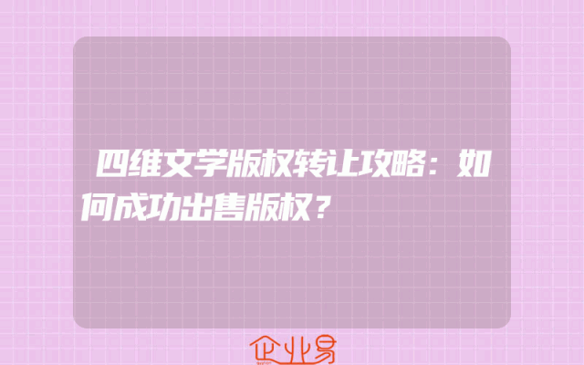 - 四维文学版权转让攻略:如何成功出售版权?