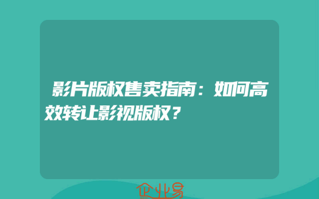 - 影片版权售卖指南:如何高效转让影视版权?