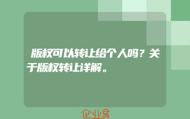 - 版权可以转让给个人吗?关于版权转让详解。