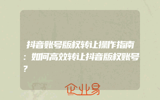 - 抖音账号版权转让操作指南:如何高效转让抖音版权账号?