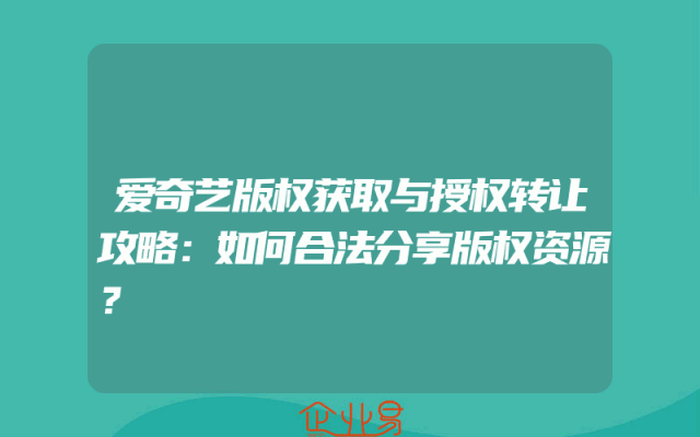 - 爱奇艺版权获取与授权转让攻略:如何合法分享版权资源?
