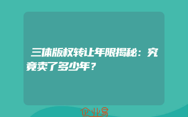 - 三体版权转让年限揭秘:究竟卖了多少年?