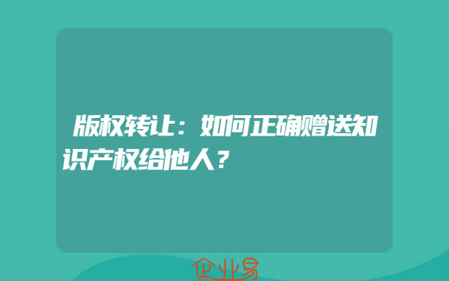 - 版权转让:如何正确赠送知识产权给他人?