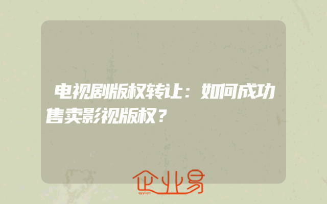 - 电视剧版权转让:如何成功售卖影视版权?