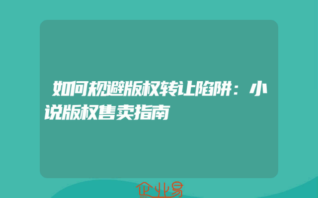 - 如何规避版权转让陷阱:小说版权售卖指南