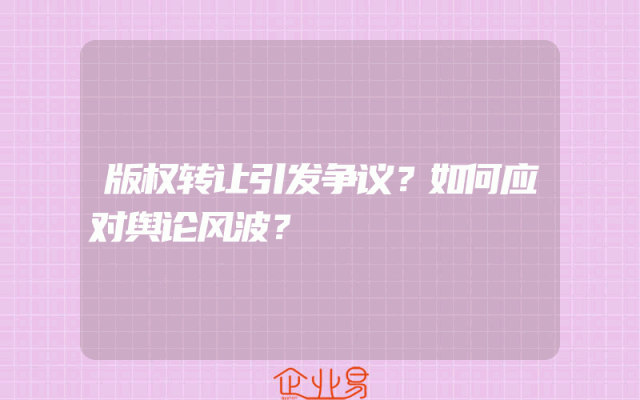 - 版权转让引发争议?如何应对舆论风波?一、版权转让中的争议现状随着知识产权领域的不断发展,版权转让成为了行业内常见的活动。然而,这也容易引发各种争议,尤其是在舆论场中被放大。争议的焦点往往围绕着版权转让的合法性、公平性、以及转让后的使用问题。