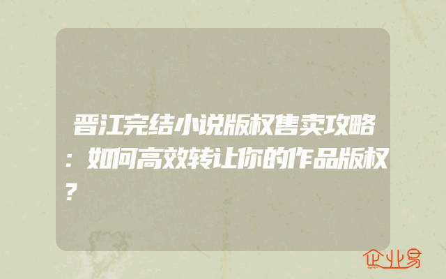 - 晋江完结小说版权售卖攻略:如何高效转让你的作品版权?