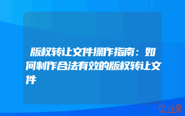 - 版权转让文件操作指南:如何制作合法有效的版权转让文件