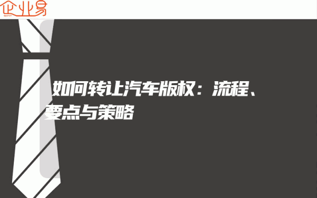 - 如何转让汽车版权:流程、要点与策略