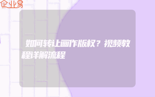 - 如何转让画作版权?视频教程详解流程