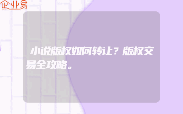 - 小说版权如何转让?版权交易全攻略。