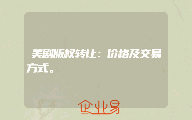 - 美剧版权转让:价格及交易方式。