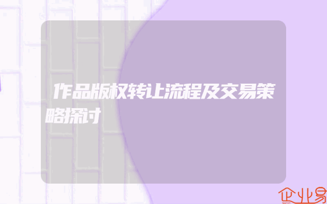 - 作品版权转让流程及交易策略探讨一、版权转让流程概述在知识产权领域,版权转让是常见的一项事务。它涉及作品创作者与受让方之间的权益分配和转移。版权转让流程通常包括以下几个主要环节:首先,双方就作品转让进行初步沟通,明确转让意向和条件;其次,准备