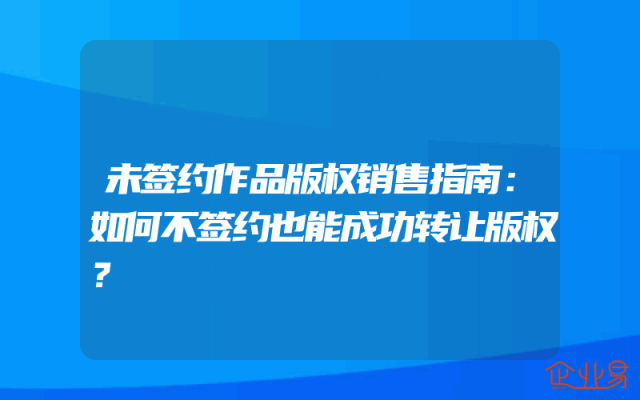 - 未签约作品版权销售指南:如何不签约也能成功转让版权?