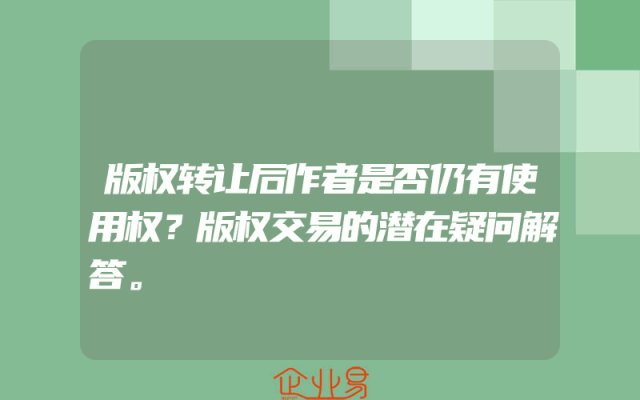- 版权转让后作者是否仍有使用权?版权交易的潜在疑问解答。
