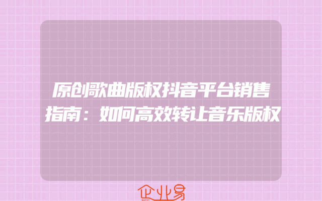 - 原创歌曲版权抖音平台销售指南:如何高效转让音乐版权