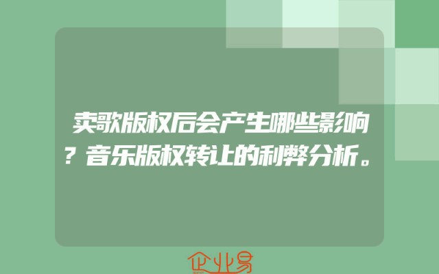 - 卖歌版权后会产生哪些影响?音乐版权转让的利弊分析。