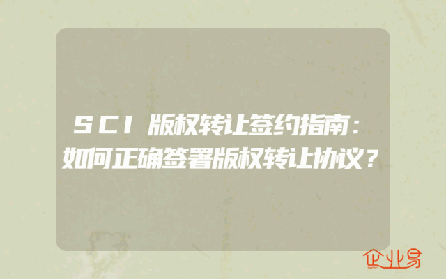 - SCI版权转让签约指南:如何正确签署版权转让协议?