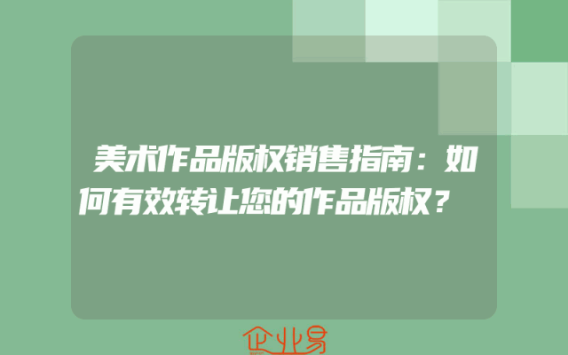 - 美术作品版权销售指南:如何有效转让您的作品版权?