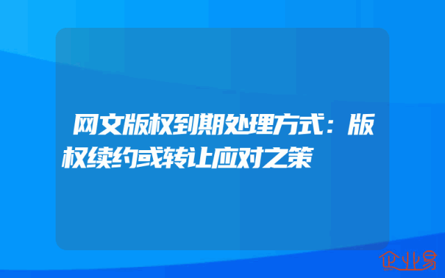 - 网文版权到期处理方式:版权续约或转让应对之策