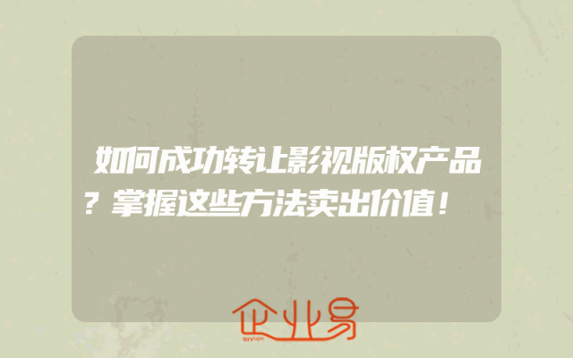- 如何成功转让影视版权产品?掌握这些方法卖出价值!