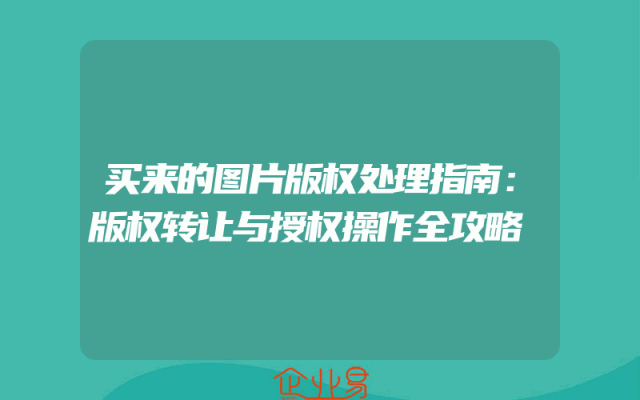 - 买来的图片版权处理指南:版权转让与授权操作全攻略