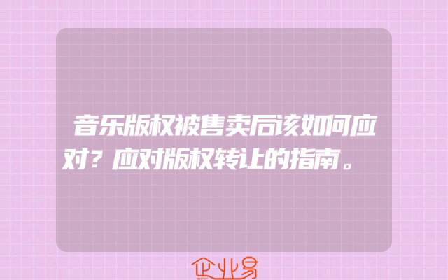 - 音乐版权被售卖后该如何应对?应对版权转让的指南。