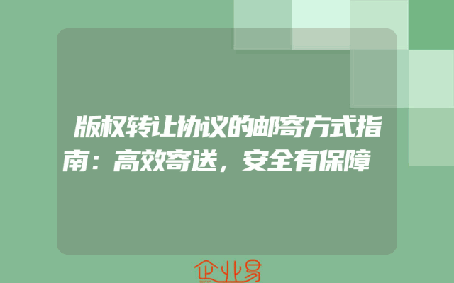 - 版权转让协议的邮寄方式指南:高效寄送,安全有保障