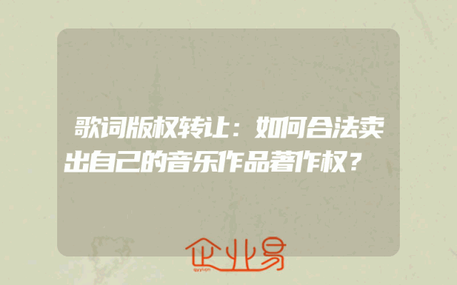 - 歌词版权转让:如何合法卖出自己的音乐作品著作权?