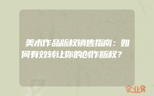 - 美术作品版权销售指南:如何有效转让你的创作版权?