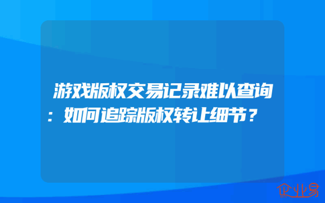 - 游戏版权交易记录难以查询:如何追踪版权转让细节?
