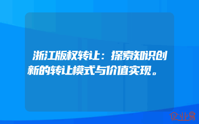 - 浙江版权转让:探索知识创新的转让模式与价值实现。
