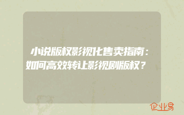 - 小说版权影视化售卖指南:如何高效转让影视剧版权?