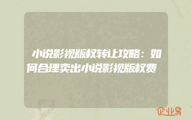 - 小说影视版权转让攻略:如何合理卖出小说影视版权费