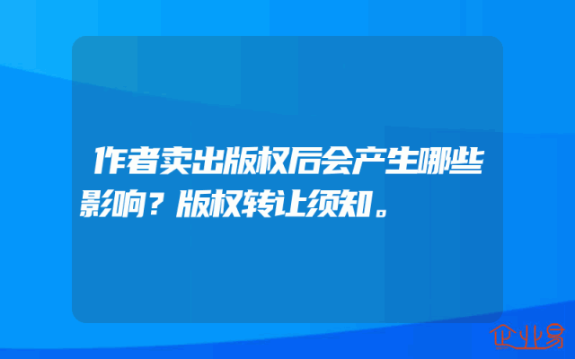 - 作者卖出版权后会产生哪些影响?版权转让须知。