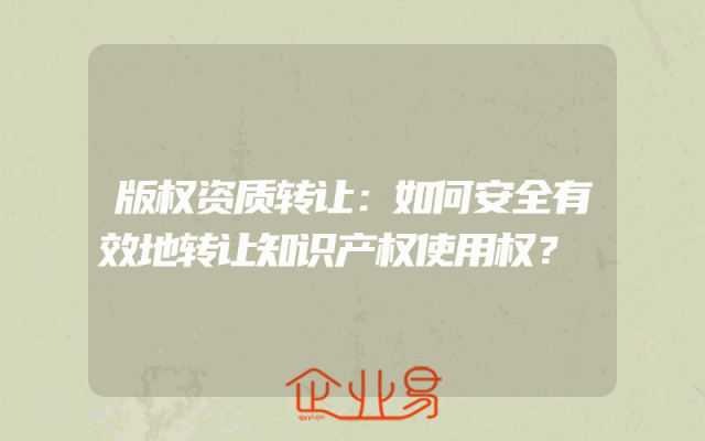 - 版权资质转让:如何安全有效地转让知识产权使用权?